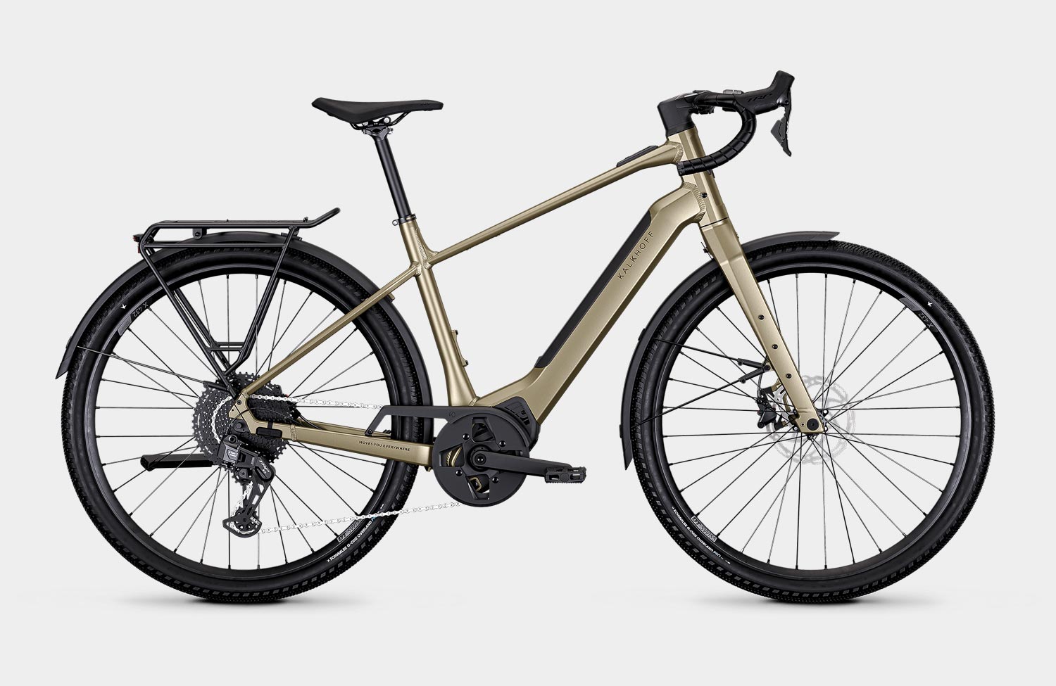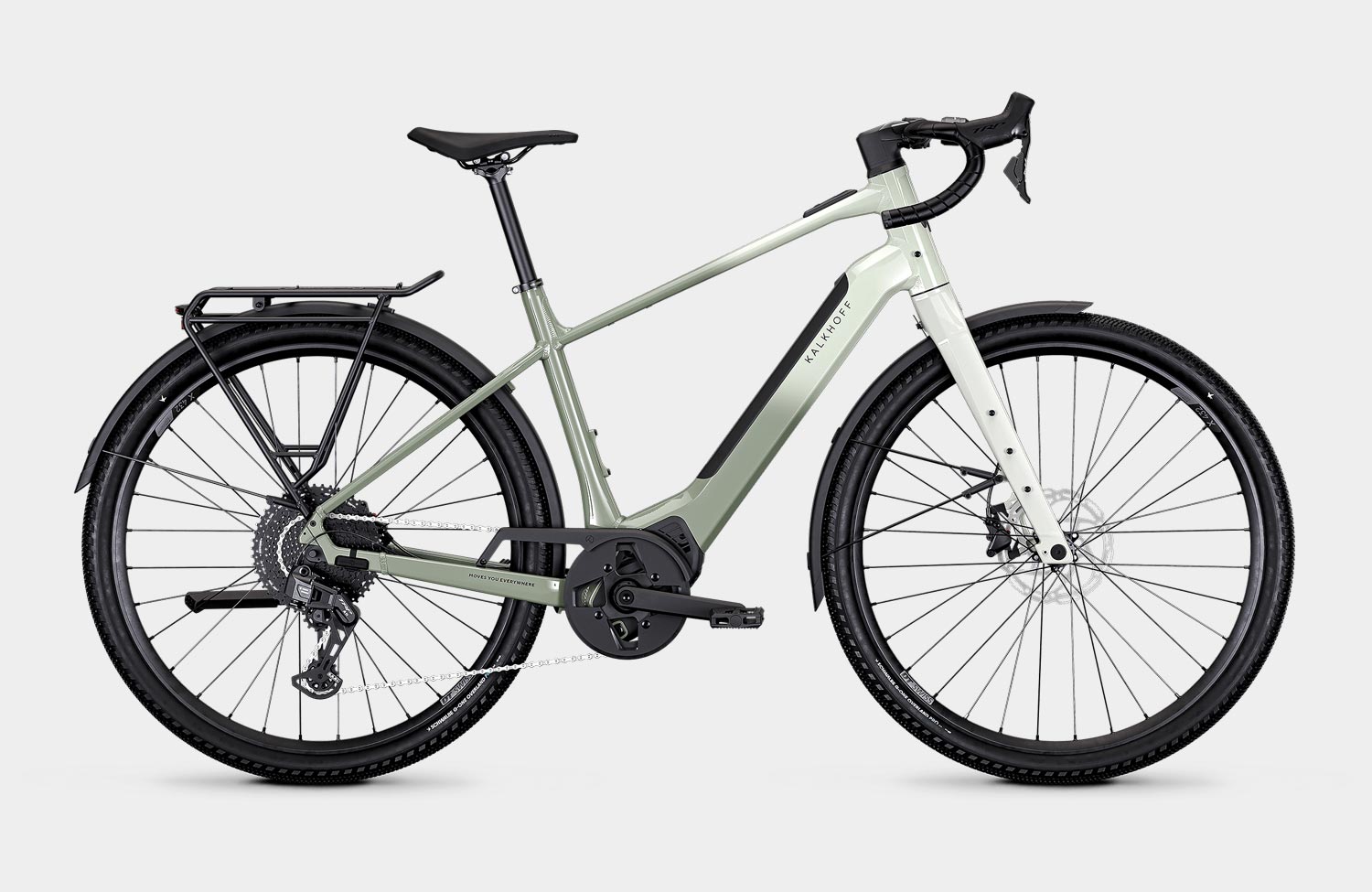 A double first for Kalkhoff: with the new Endeavour L Touring, the brand is launching its first-ever model featuring drop bars – or road handlebars. In doing so, the manufacturer is venturing into a sector that has hitherto been dominated by gravel bikes. But that’s not all: at the same time, this is the first time the brand’s own range has featured an electronic derailleur from TRP, which even offers an automatic mode.