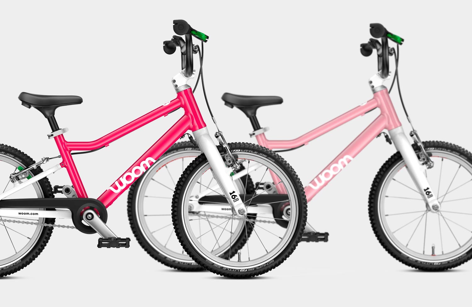 Just last year, Woom introduced its popular children’s bicycles in their redesigned GO series – for the first time also permanently in a pink color, after pink had previously only been available in limited editions. The Hot Pink introduced at that time changes depending on the light and visually sits somewhere between dark pink and strong red.