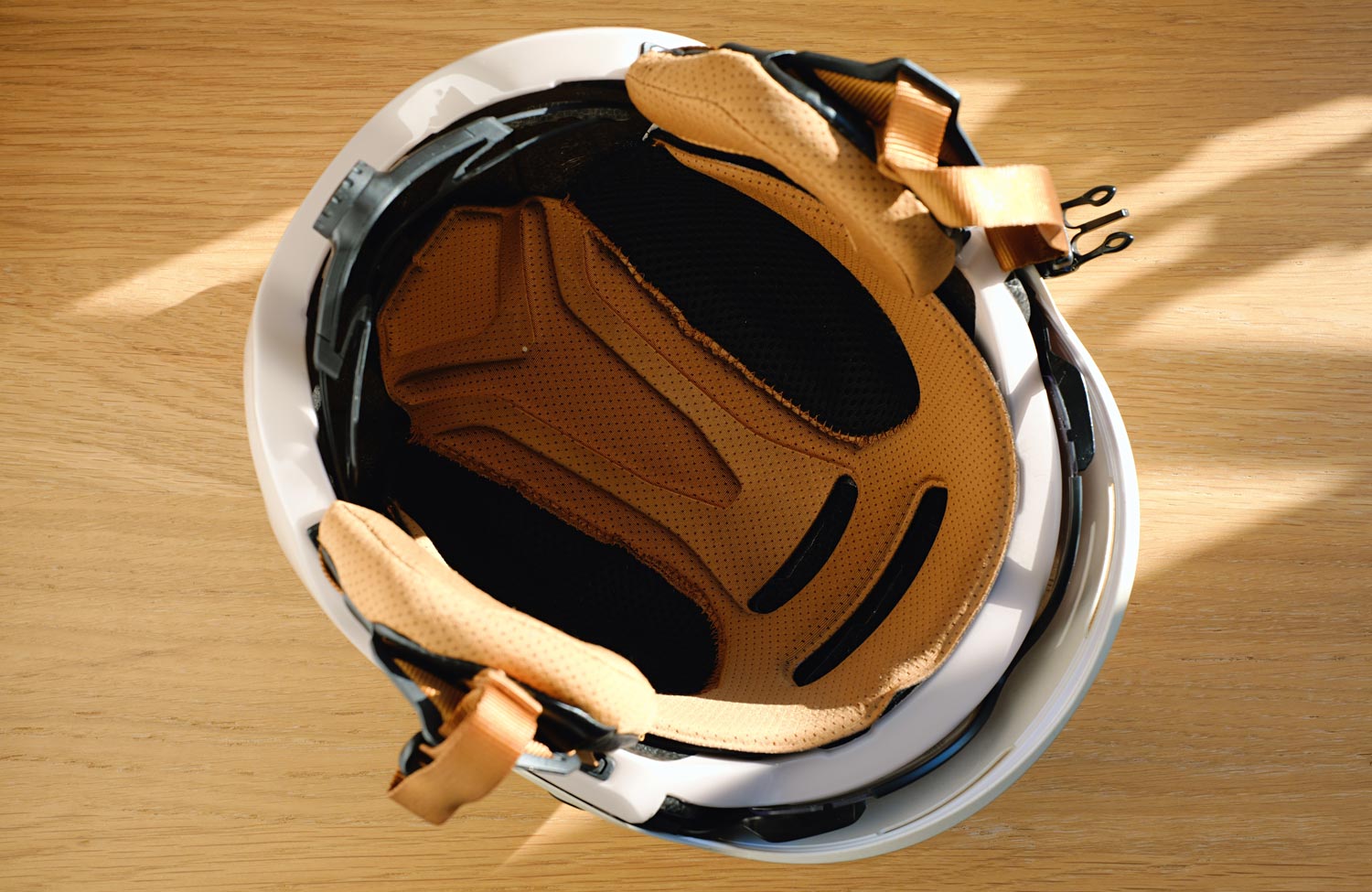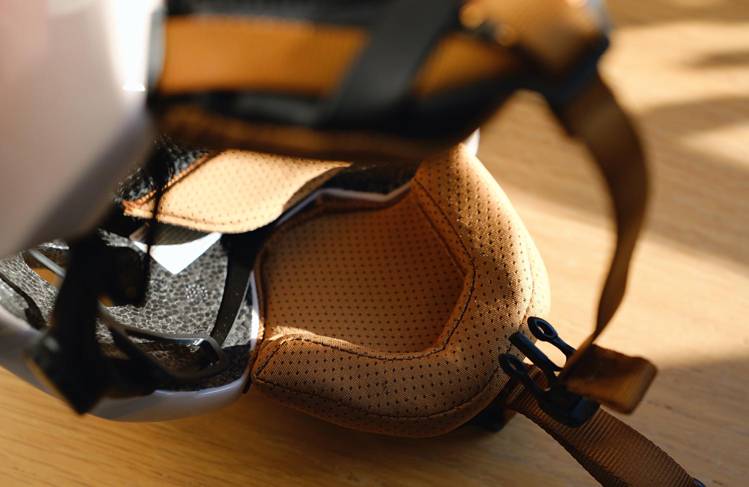 The test model is officially described as white, but in practice it appears more eggshell-coloured or beige. The straps and inner padding are in a warm brown tone to match. Those who prefer a more neutral look can opt for the completely black version instead.