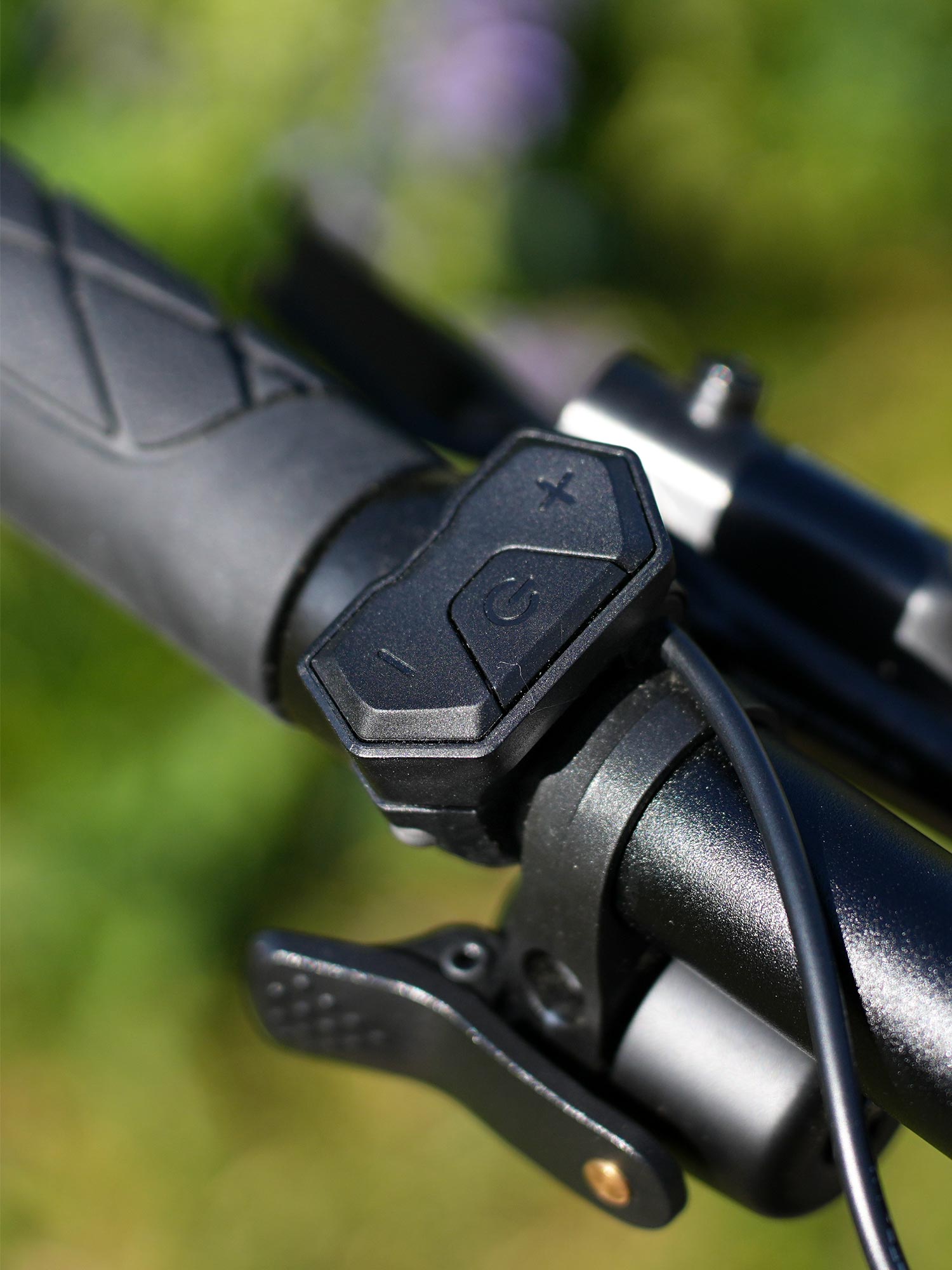 The electric drive is operated via a 3-button controller on the handlebars and is largely self-explanatory: the mode change is simply done via the plus and minus buttons, with a long press on these you can activate the lighting or the pushing aid. There are separate buttons for changing the screen on the display.