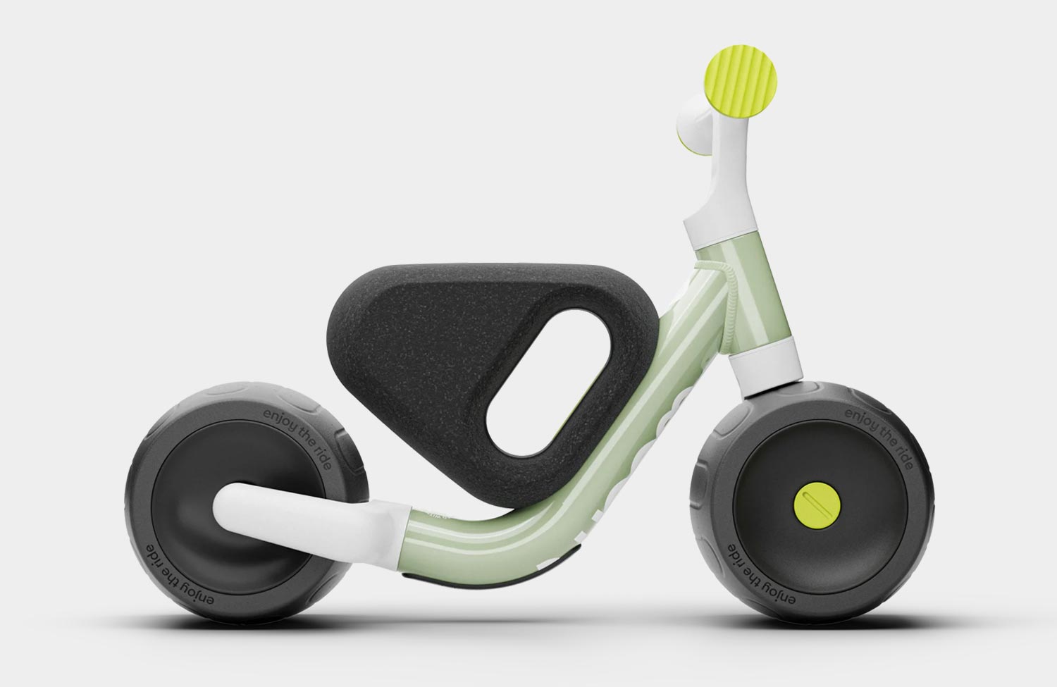 Weighing just 2.7 kilograms, it is pleasantly lightweight and therefore ideal for children between approximately nine months and three years of age (70–100 cm tall and weighing up to 20 kg). The frame is made from almost 98 per cent recycled, pollutant-tested composite material, which is robust, durable and environmentally friendly. Parents have also been taken into consideration: the handlebars can be folded down and aligned parallel to the frame, making storage and transport particularly easy. Another important feature is the very wide EVA tyres, which enable the bike to glide silently along.