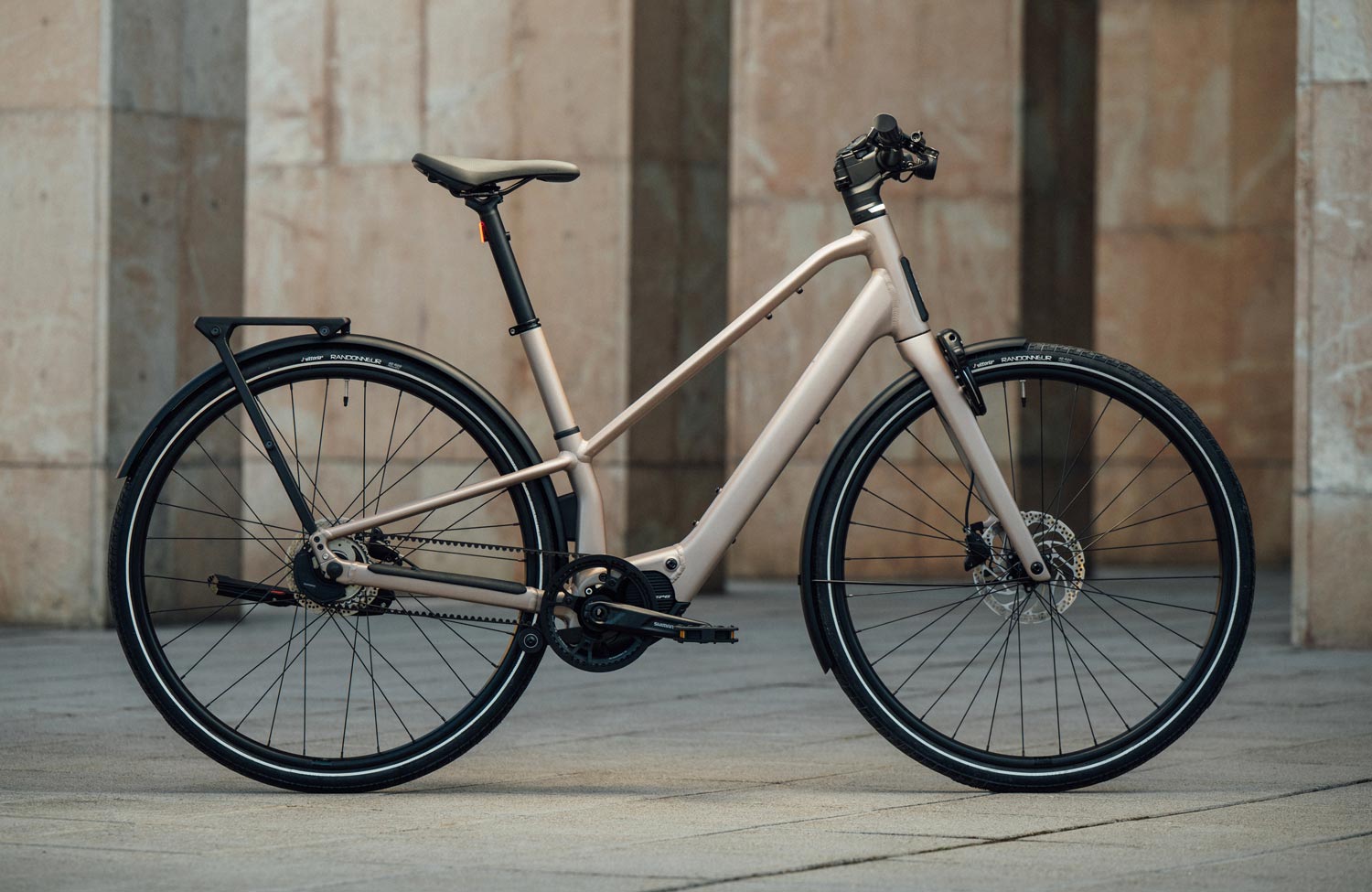Zusätzlichen Komfort verspricht eine Carbongabel. Zusammen mit der Urban-Active-Geometrie soll sie für ein agiles, gleichzeitig kontrollierbares Fahrverhalten sorgen. Der tiefe Einstieg erleichtert zudem das Auf- und Absteigen – ein Vorteil im dichten Stop-and-Go der Stadt.
