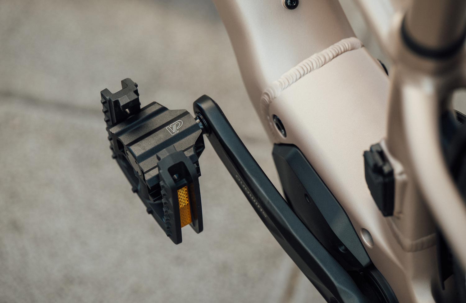 Auch abseits der Fahrt ist das Bike auf urbane Nutzung ausgelegt. Der Lenker lässt sich um 90 Grad drehen, während die Pedale eingeklappt werden können. Dadurch wird das Fahrrad deutlich schmaler und lässt sich leichter in Wohnungen, Kellern oder Fahrradabteilen verstauen.