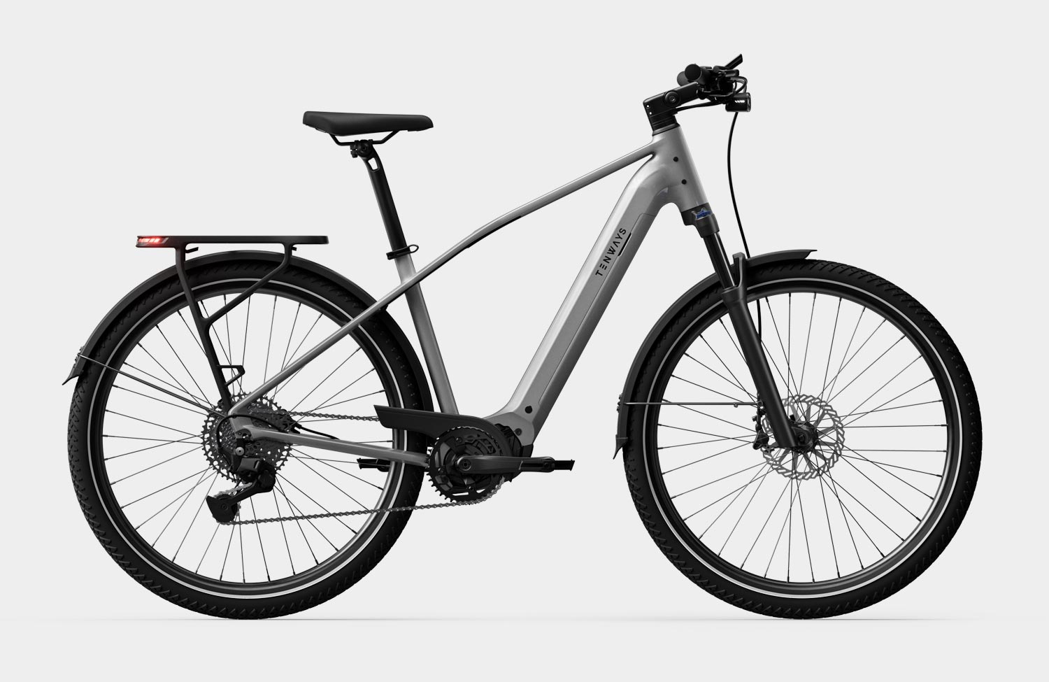Zur Einordnung lohnt ein kurzer Blick zurück. Das erste AGO X aus dem Jahr 2023 war das erste Tenways-Modell mit Mittelmotor überhaupt. Diese Serie wurde kontinuierlich erweitert, zuletzt mit dem Tenways AGO Air – mit angenehm schlanker Silhuette und einem Motor, der erstmalig von Tenways selbst gelabelt ist. Während das AGO Air ausschließlich als Tiefeinsteiger erhältlich ist, bleibt das AGO X auch weiterhin beim klassischen Diamantrahmen mit hohem Oberrohr – sportlicher und mit hoher Verwindungssteifigkeit.